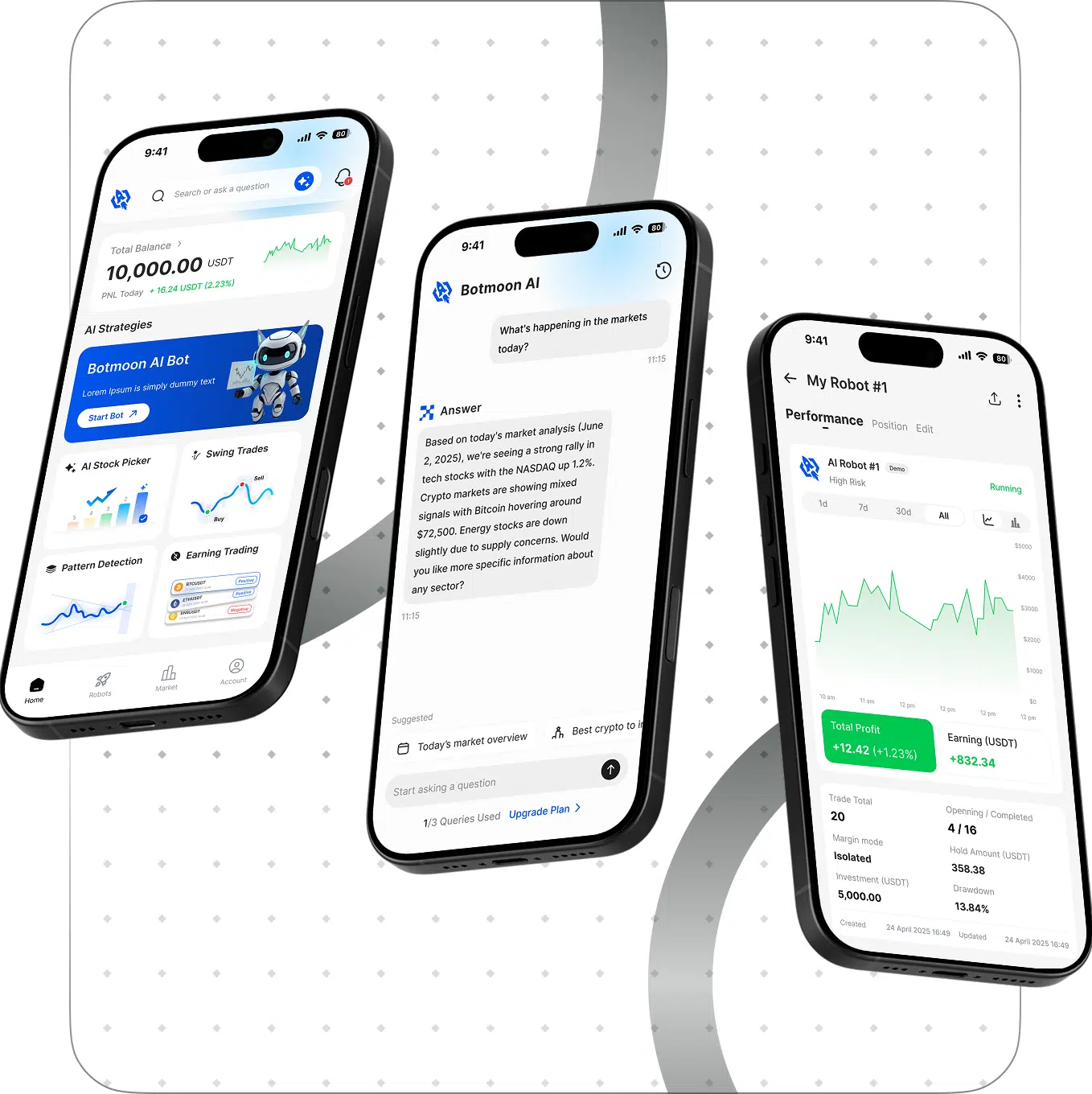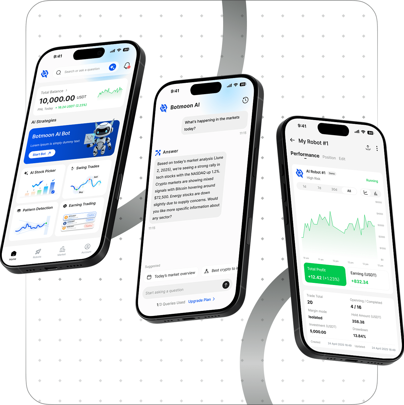 ด้วยฟีเจอร์เช่น Auto Trading Bot, API Super Fast, Multi‑Strategy และ Signal Master BOTMOON ช่วยให้ผู้ใช้ตั้งกลยุทธ์หลายรูปแบบพร้อมกัน วิเคราะห์จังหวะเข้าซื้อ–ขายอย่างแม่นยำ และควบคุมความเสี่ยงได้ง่ายดาย นอกจากนี้ยังมีสัญญาณจากเทรดเดอร์มืออาชีพให้ผู้ใช้เลือกติดตาม เติมเต็มประสบการณ์เทรดให้อัจฉริยะและเชื่อถือได้
